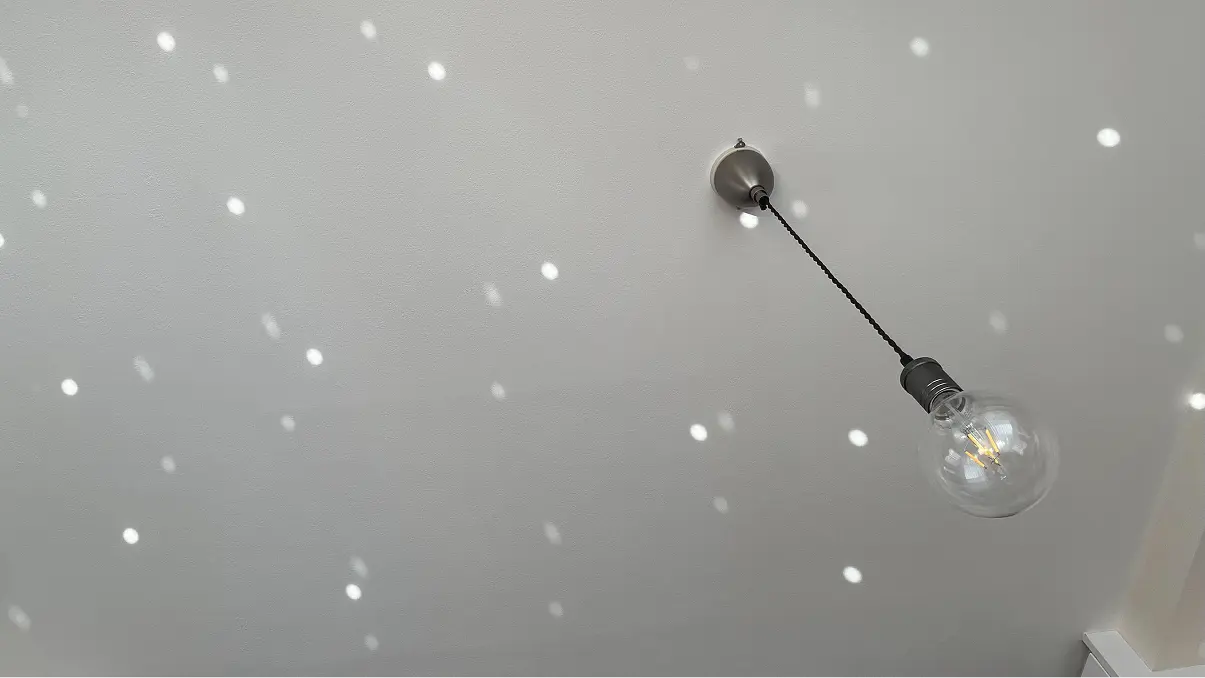 陽がさす日だと、1日に数十分間だけミラーボールが反射して部屋中がキラキラする「フィーバータイム」が発生します。反射の仕方が毎回違うので、それを観察するのが日常のたのしみになっています。